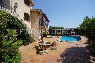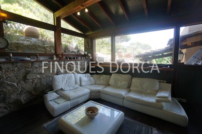 El espacio exterior dispone de un garaje cerrado para dos vehículos, jardín y terrazas funcionales que rodean la casa, gran piscina frente a un porche exterior, ofreciendo absoluta privacidad y vistas directas al mar.
